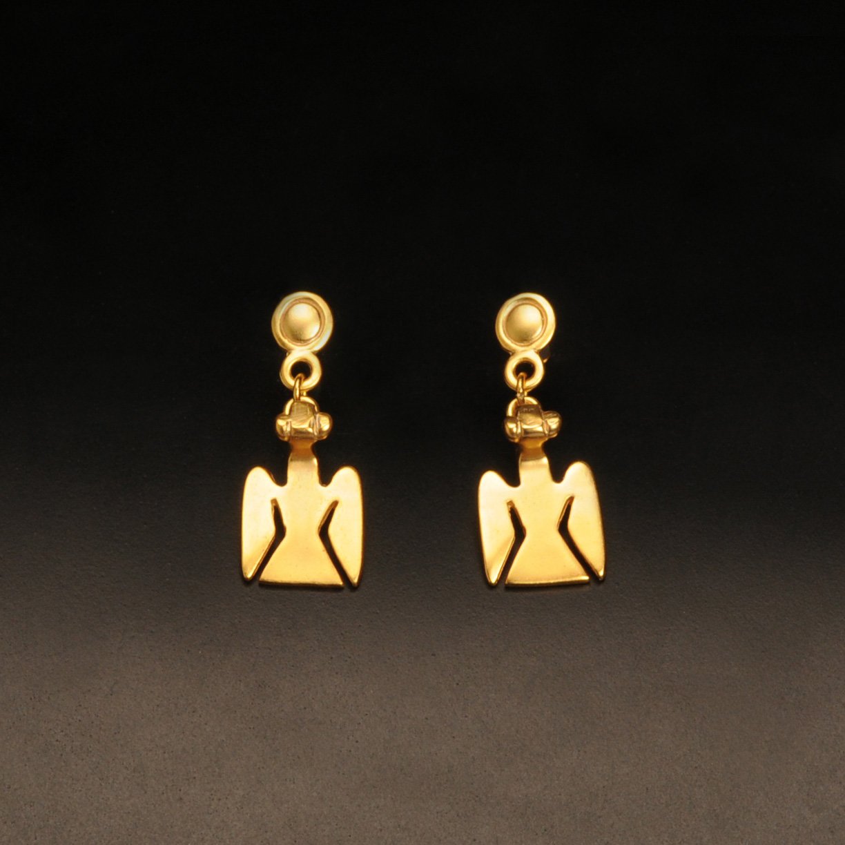 Bijuterie exotica, traditional sud-americana, cu stil unic si simbolistica deosebita. Sistem de prindere cu surub din material antialergic, care se poate schimba cu tortita inchisa. Aliaj de argint cu staniu placat cu aur de 24k. Nu contine nichel. Aceste bijuterii cu aspect vintage sunt fabricate de artizani columbieni care, de-a lungul generatiilor, au pastrat traditia artei precolumbiene.
