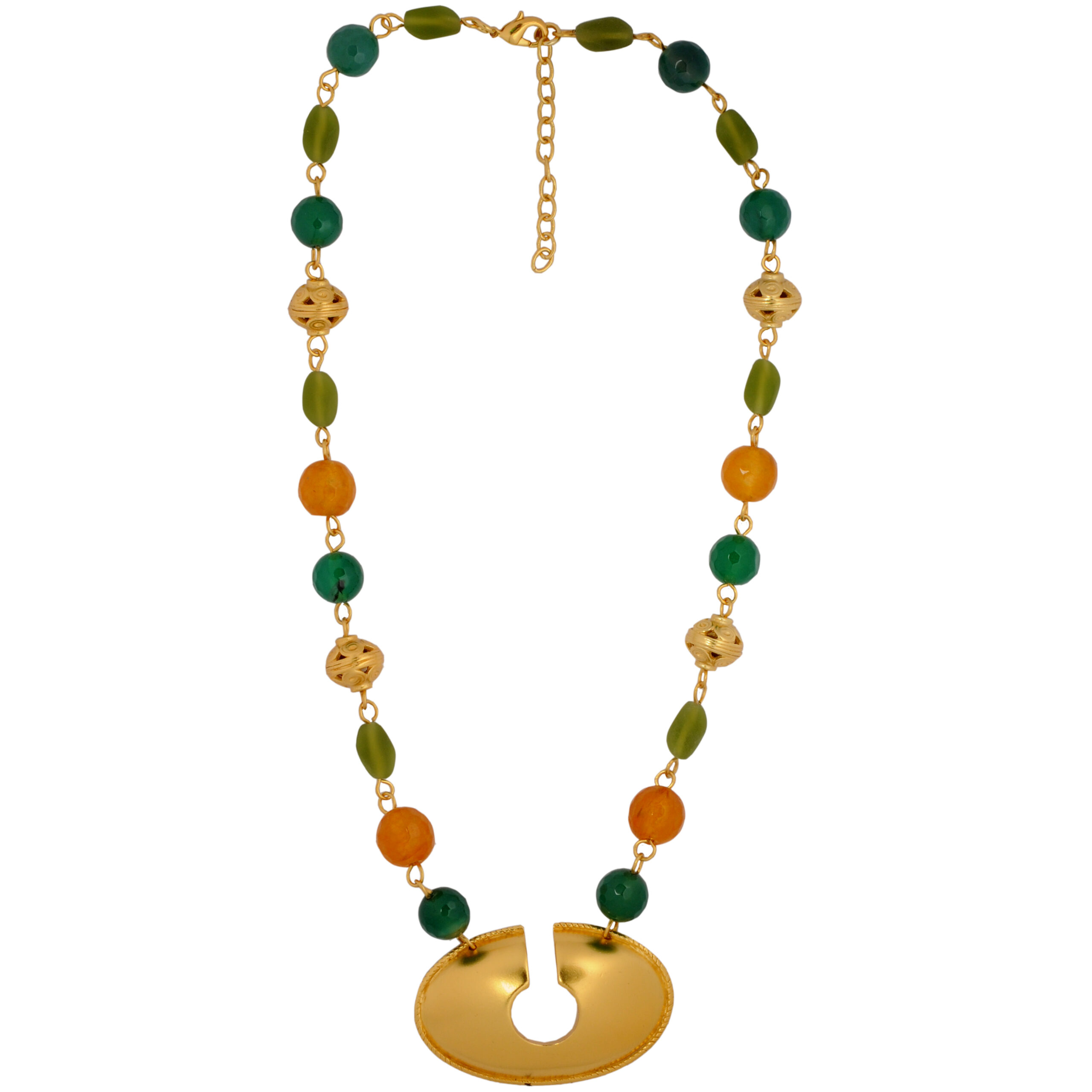 HomeColiereColiere pietre semipretioaseColier cu agate, cristale, separatoare si pandantiv semiluna neteda ovala, cultura Quimbaya