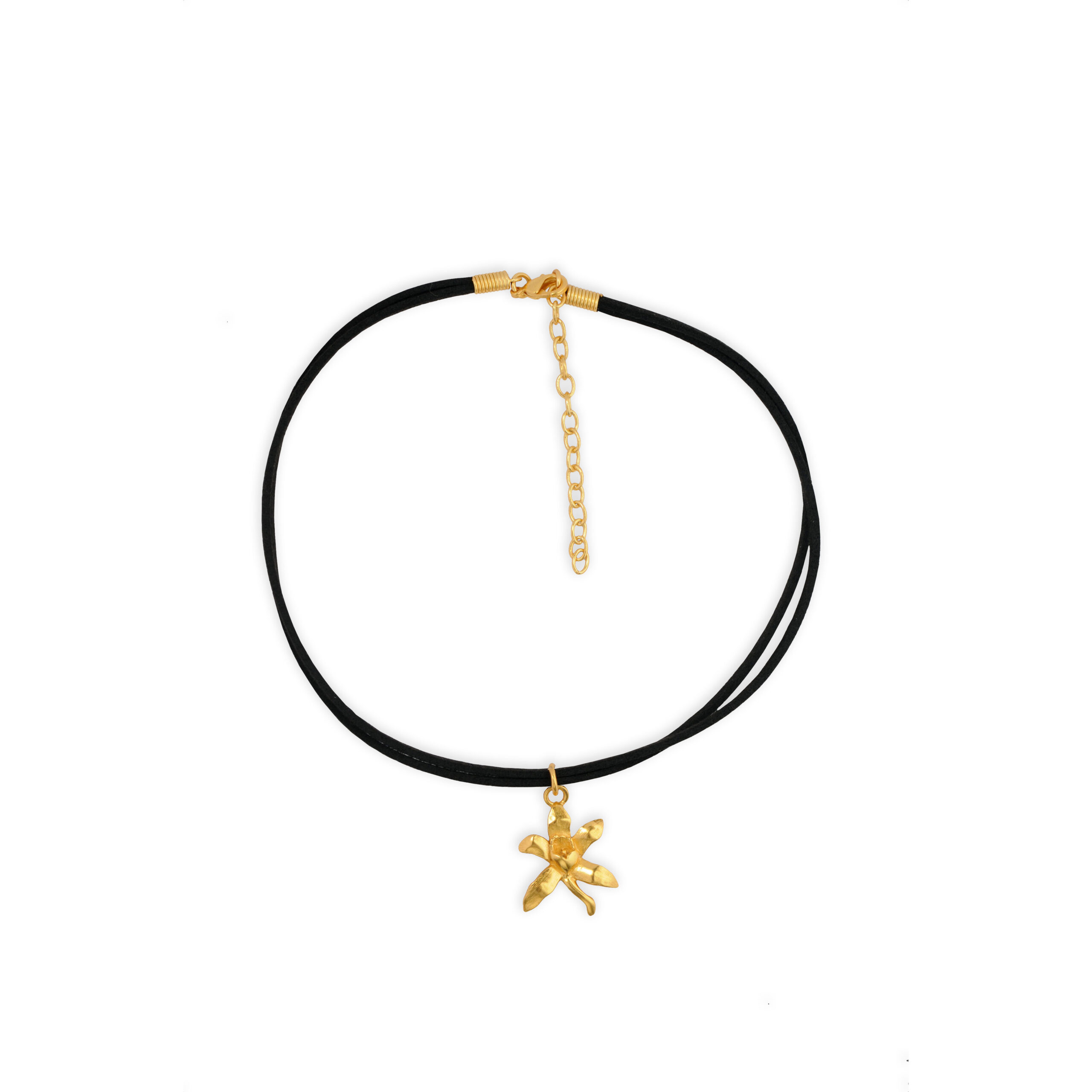 Colierul tip choker din piele intoarsa cu pandantiv floare de orhidee este o bijuterie exotica, traditional sud-americana, cu stil unic si simbolistica deosebita. Aliaj de argint cu staniu placat cu aur de 24k sau argint pur. Nu contine nichel. Aceste bijuterii cu aspect vintage sunt fabricate de artizani columbieni care, de-a lungul generatiilor, au pastrat traditia artei precolumbiene.