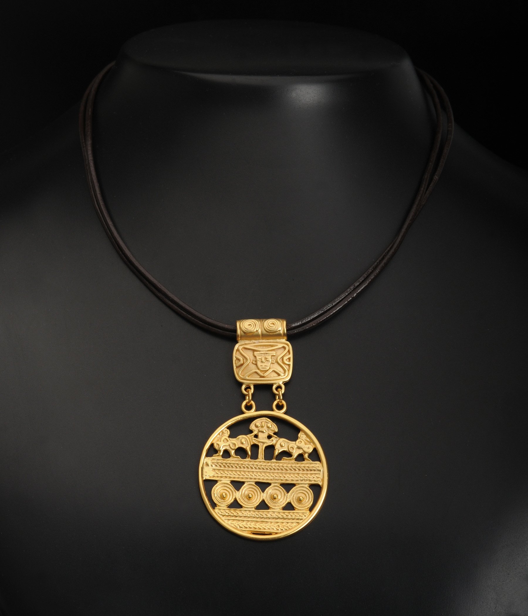HomeColiereColiere pieleColier piele maro dubla 2mm cu pandantiv om inconjurat de jaguari v2, cultura Sinú
