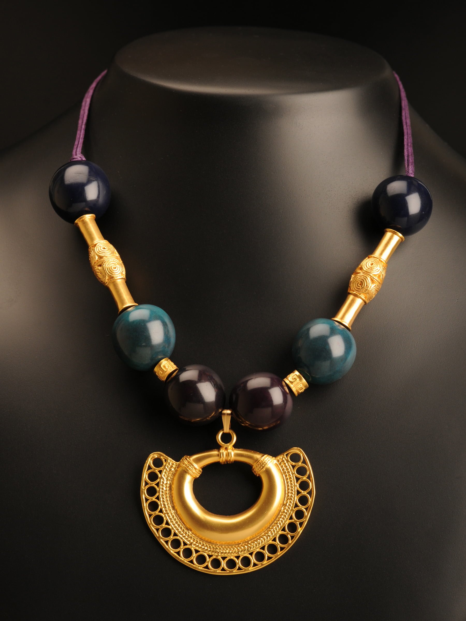HomeColiereColiere seminteColier seminte palmier mov metalizat cu semiluna decorata cu cercuri, cultura Tairona