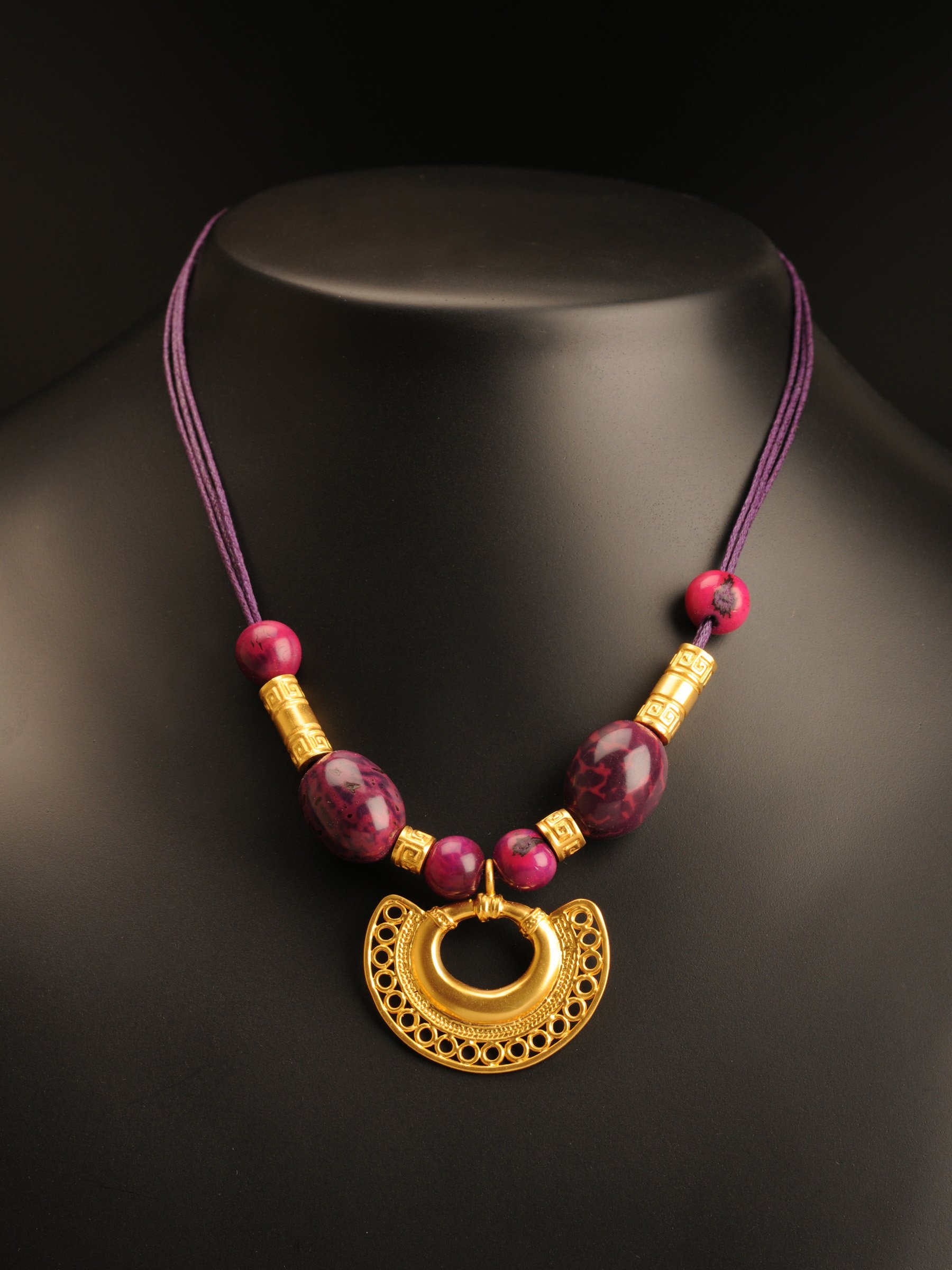 HomeColiereColiere seminteColier seminte palmier mov nuantat cu semiluna decorata cu cercuri, cultura Tairona