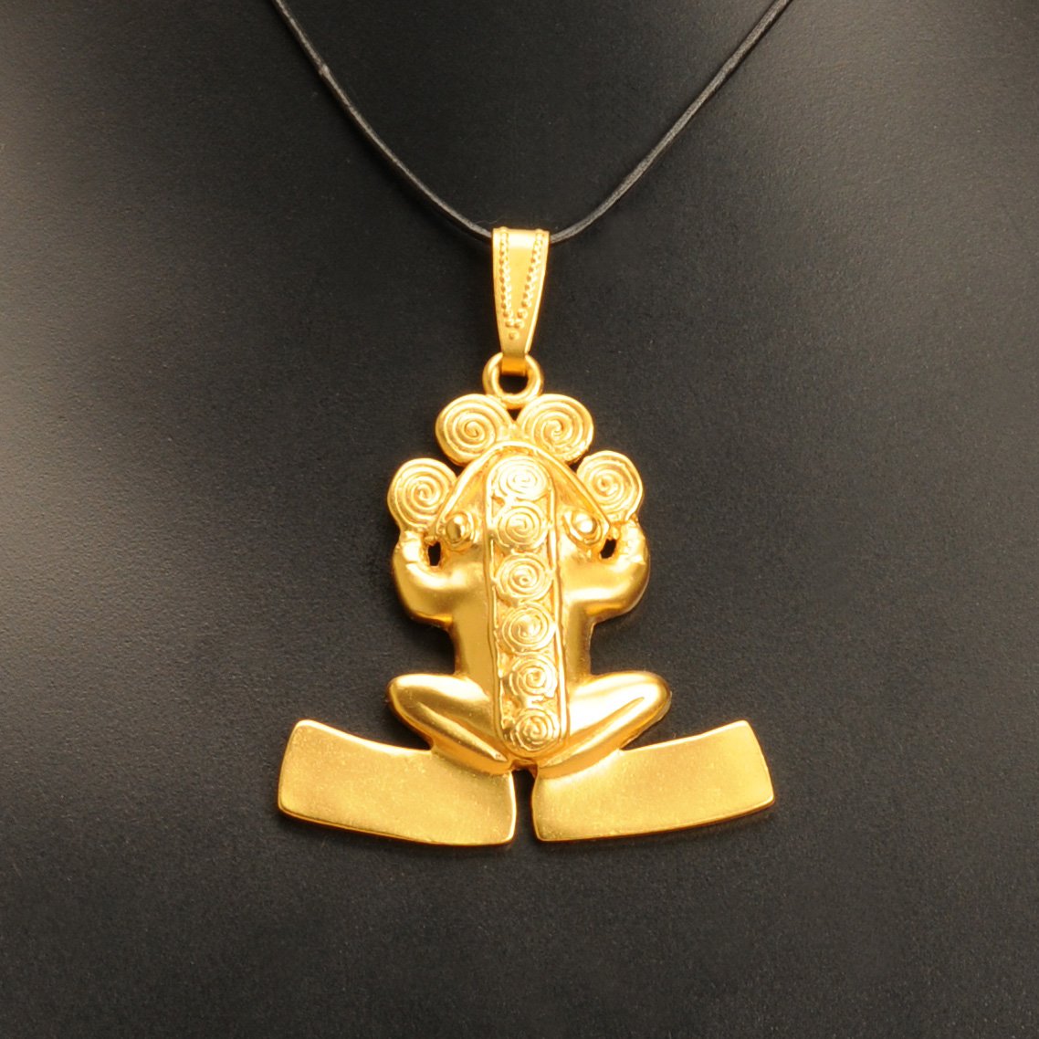 Bijuterie exotica, traditional sud-americana, cu stil unic si simbolistica deosebita. Se poate combina cu snur de piele, lant sau anou la baza gatului, devenind in acest fel un colier statement. Aliaj de argint cu staniu placat cu aur de 24k sau argint pur. Nu contine nichel. Aceste bijuterii cu aspect vintage sunt fabricate de artizani columbieni care, de-a lungul generatiilor, au pastrat traditia artei precolumbiene.