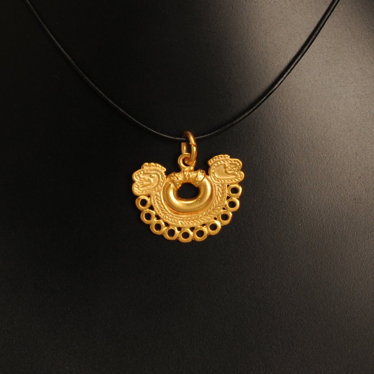 Bijuterie exotica, traditional sud-americana, cu stil unic si simbolistica deosebita. Se poate combina cu snur de piele, lant sau anou la baza gatului, devenind in acest fel un colier statement. Aliaj de argint cu staniu placat cu aur de 24k. Nu contine nichel. Aceste bijuterii cu aspect vintage sunt fabricate de artizani columbieni care, de-a lungul generatiilor, au pastrat traditia artei precolumbiene.
