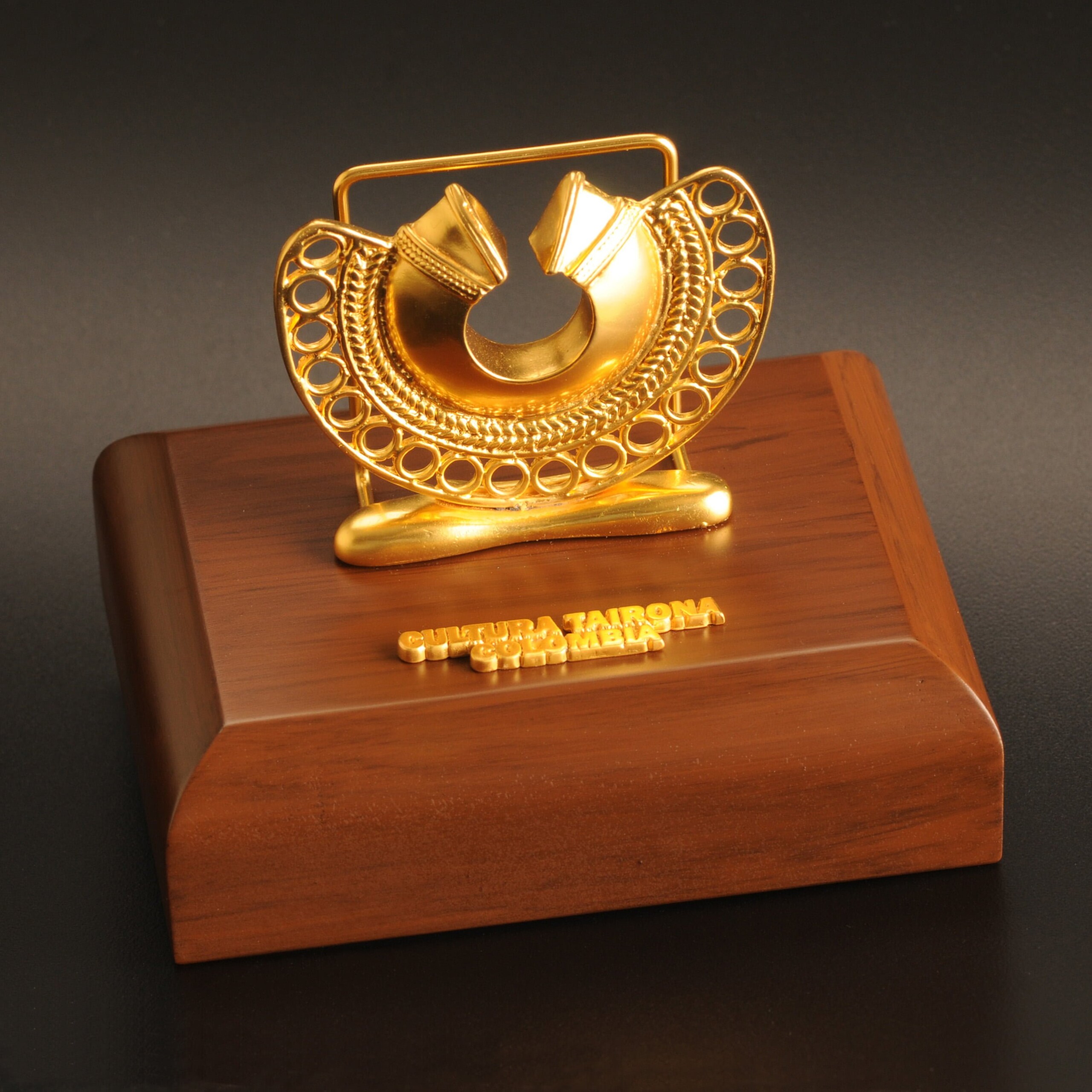 Obiect ornamental, traditional sud-americana, cu stil unic si simbolistica deosebita. Aliaj de argint cu staniu placat cu aur de 24k. Nu contine nichel. Aceste obiecte cu aspect vintage sunt fabricate de artizani columbieni care, de-a lungul generatiilor, au pastrat traditia artei precolumbiene.